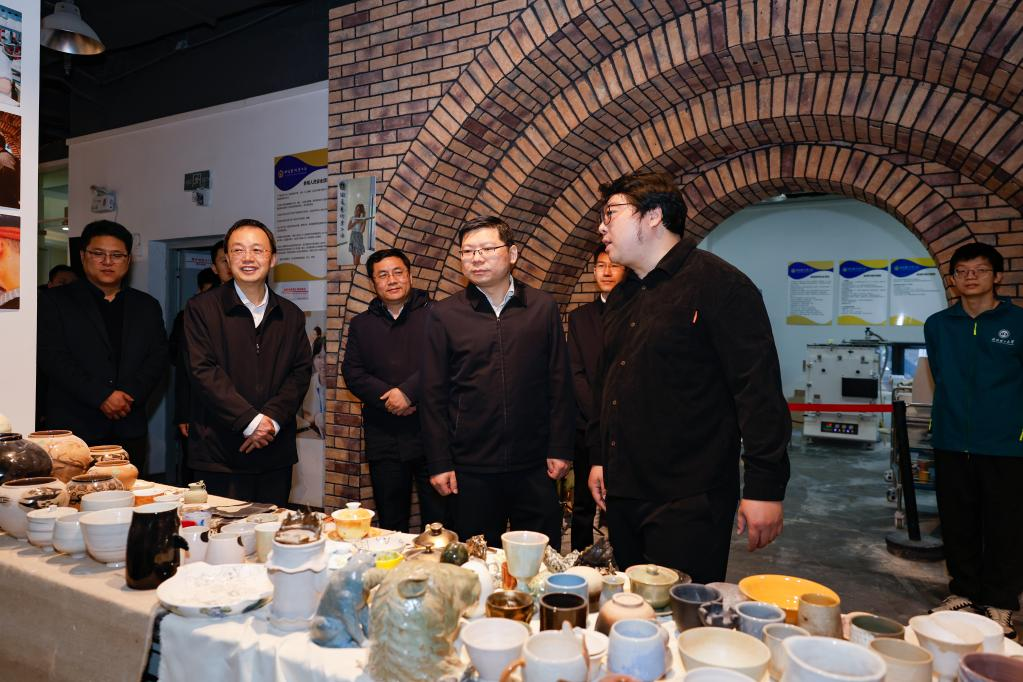 ????劉治田一行參觀了“影像里的大思政·九三閱兵展”,肯定學(xué)校打造沉浸式思政育人新載體的創(chuàng)新做法;調(diào)研陶瓷藝術(shù)夢(mèng)工場(chǎng)、大型郵輪游艇夢(mèng)工場(chǎng)、新能源和智能汽車夢(mèng)工場(chǎng),詳細(xì)了解學(xué)校依托學(xué)科優(yōu)勢(shì)搭建學(xué)生創(chuàng)新創(chuàng)業(yè)孵化轉(zhuǎn)化平臺(tái)的特色舉措,希望學(xué)校進(jìn)一步做好創(chuàng)新創(chuàng)業(yè)競(jìng)賽“后半篇”文章。